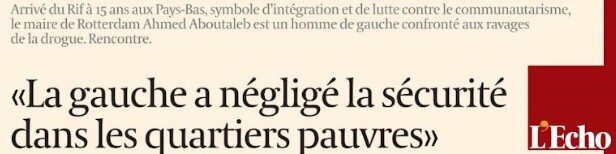 Rotterdam Mayor and Efus Vice-President Ahmed Aboutaleb stresses the crucial importance of fighting international drug trafficking, L’Echo, March 2024. Access reserved for members