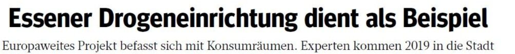 Article sur le projet SOLIDIFY consacré aux salles de consommation supervisée de drogues, avec un regard particulier sur l’un de ses partenaires, la ville d’Essen, WAZ, février 2018. Article réservé aux membres (en allemand)
