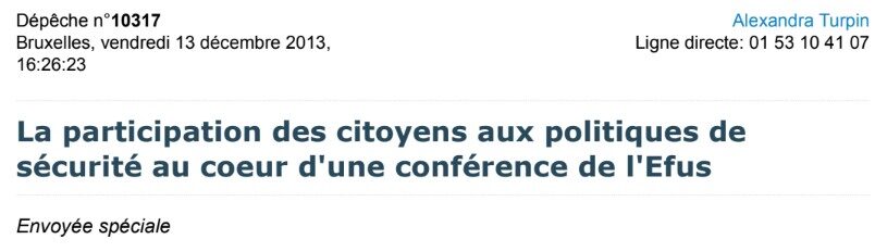 La participation citoyenne à la politique de sécurité est au cœur de la conférence de l’Efus, AEF, décembre 2013. Article réservé aux membres